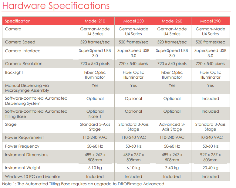 If you need a robust automated system that is powerful yet user-friendly, the Model 290 is well-suited for a wide array of contact angle, surface energy, surface tension, interfacial tension, wetting, roughness, absorption, spreading, cleanliness, and surface heterogeneity and characterization applications.