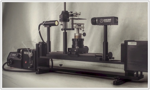 The ramé-hart Model 590 represents a most advanced and automated tool. This system includes our software-driven Automated Tilting Base assembly for measuring advancing, receding, and roll-off angles as well as contact angle hysteresis. The Automated Dispensing System, also controlled via DROPimage, is included for performing dynamic studies or adding precision and automation to the formation of pendant and sessile drops for analysis. Model 590 supports every available option including the Advanced Chamber, Environmental Chamber, and Environmental Fixture. Model 590 ships with DROPimage Advanced providing the capacity to design powerful experiments which may include drop volume and tilt control. DROPimage Advanced is also useful for measuring static and dynamic contact angle, surface energy, surface and interfacial tension.