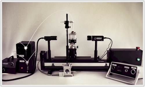 Model 790 features our long optical bench with the fully modular advanced 3-axis stage with fine and coarse vertical adjustment, our G1 Series High Speed digital camera, fiber optic illuminator, DROPimage Advanced software, and all of the additional components detailed below. Please see the link for component product specifications and pictures.