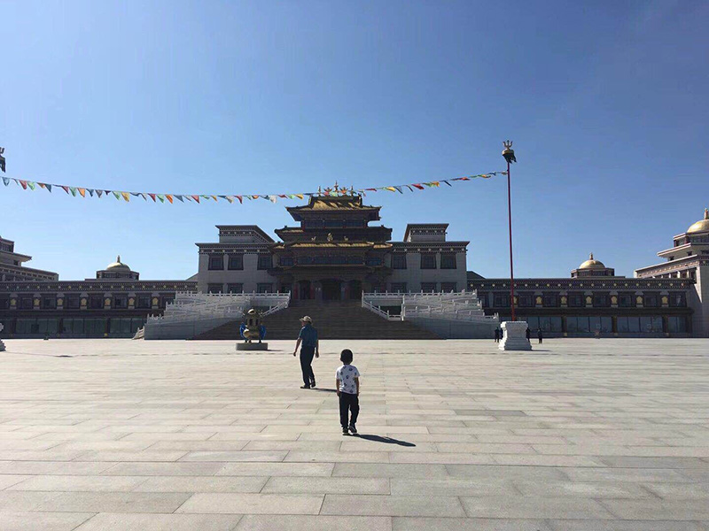 简单休息,我们随着大巴来到了康巴什新区成吉思汗政府广场,在导游的讲解下,成吉思汗在蒙古人民心里是圣祖,是长生天的象征,我们看到了成吉思汗的各种雕像,还有好多蒙古族衣服体验拍照的和卖玩具的,很有特色,漫步于乌兰木伦湖畔,欣赏了很多壁画,沿途拍到了很多特色的花(见识有限,认识的只有郁金香,-_-||),时间有限的我们再次踏上了去乌兰活佛府的大巴上,下车后看见很多旗帜组成的蒙古包,因为大殿维修的缘故,很可惜我们只参观了偏殿,蒙古族的宗教文化果然和汉族的文化不一样,金碧辉煌,很有特色,可能因为参观时间较短总觉得缺少了一些佛教的神圣和肃穆(不准拍照,所以没法给大家分享照片啦,O(∩_∩)O)。