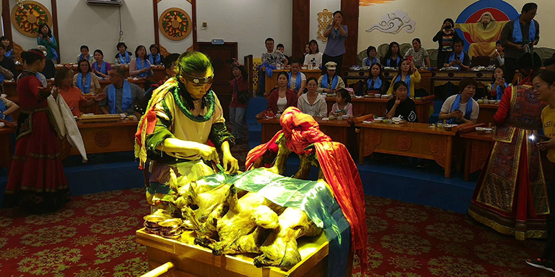 下马后我们到特色餐厅体验蒙古美食,公司BOSS和其夫人穿上了蒙古特殊服装,开启了蒙古宫廷大宴(烤全羊)的开幕式,烤全羊不愧是特色美味佳肴,外表金黄油亮,外焦内嫩,吃的好过瘾,中间又上了一道特色菜手扒羊肉,不一样的感觉,吃不了的我们充分发挥打包的传统,把吃不掉的羊肉全打包了。