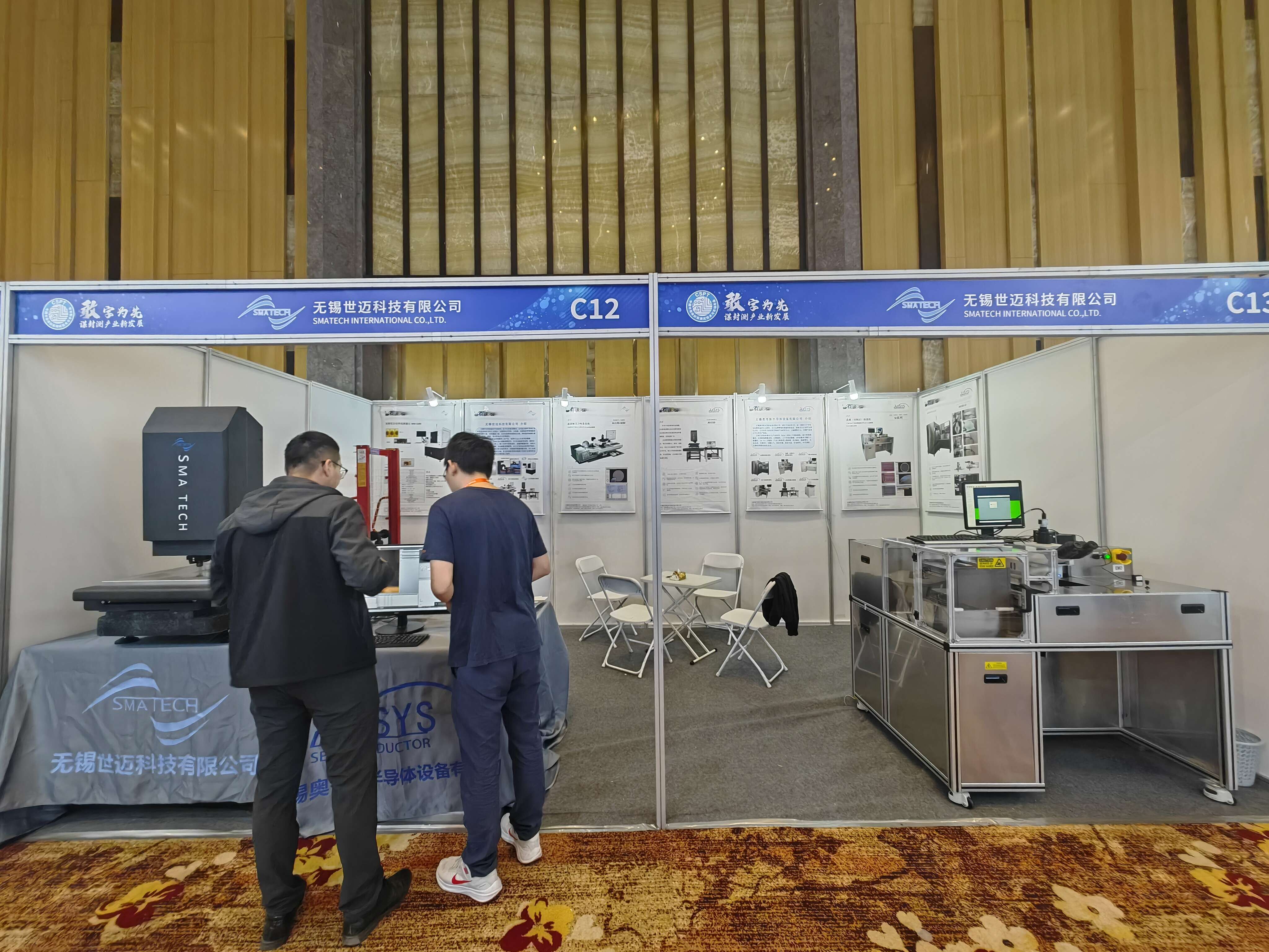 世迈科技作为赞助商之一,携自主产品自动影像测量仪(AV350)和晶圆(切割后)缺陷检查机SI200参与了本次年会。AV350适用于对同一检测物在同等检测条件下自动、批量检测,如引线框架二维尺寸,bump球高球径测量等。SI200升级奥林巴斯显微镜拥有符合E142晶圆图的自动搬运系统,配有高精度电动平台和wafer mapping,用于晶圆(切割后)的微观检查,以达到监控品质的目的。会上部分客户对产品的功能进行了解,工程师进行现场演示和功能解说。