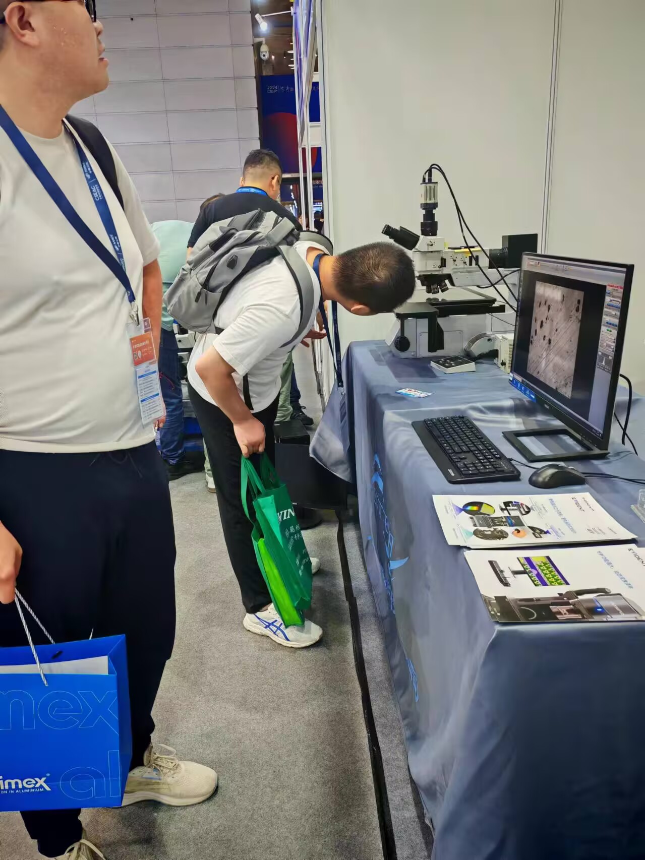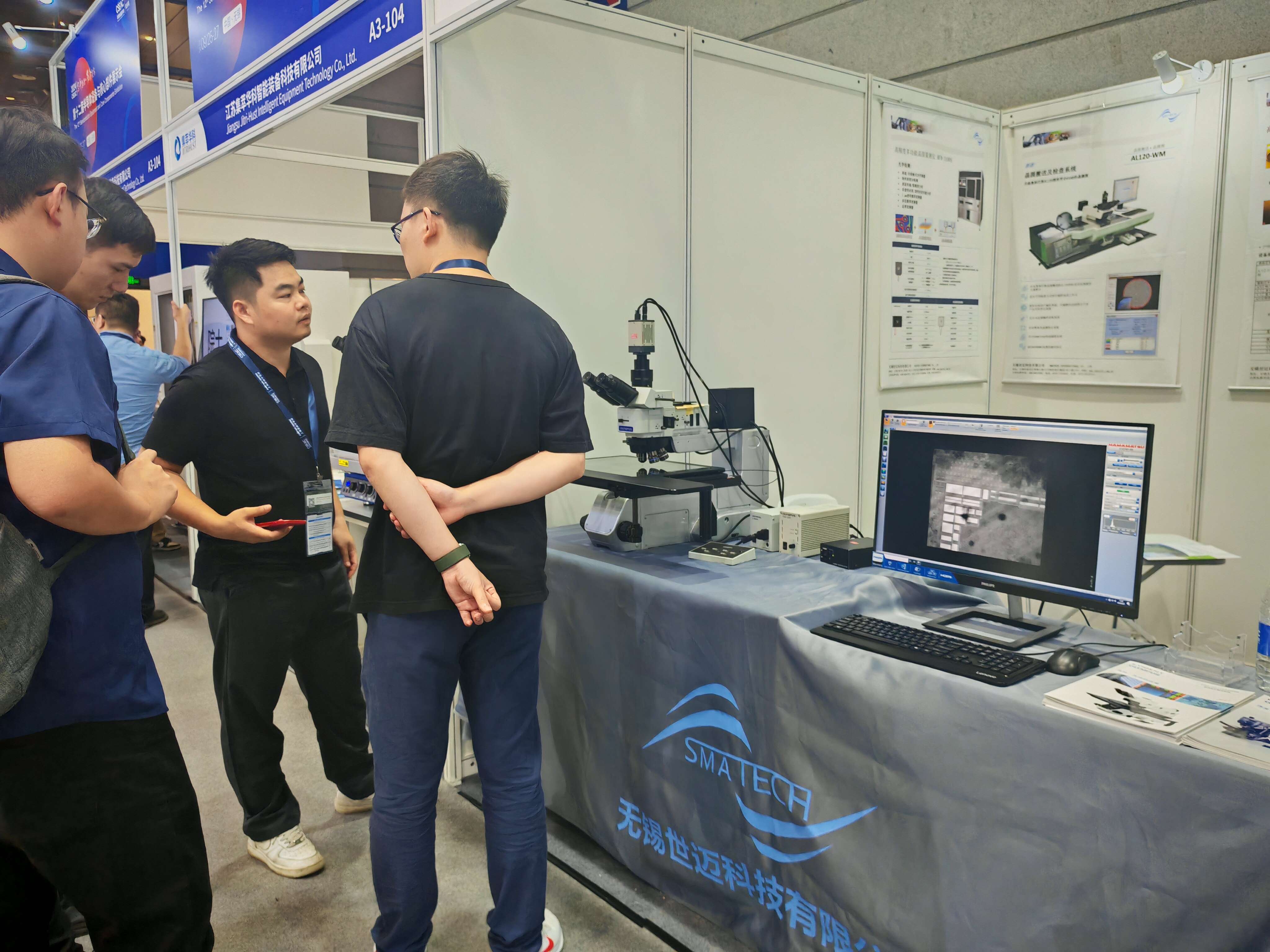 世迈携定制红外显微镜和自动测量显微镜AV350参加了本次活动。展会期间,我们的应用工程师和销售人员向来访观众介绍了红外显微镜的应用情况及与普通观察类显微镜的区别。同时展出的自动测量显微镜也引来不少观众驻足观看。