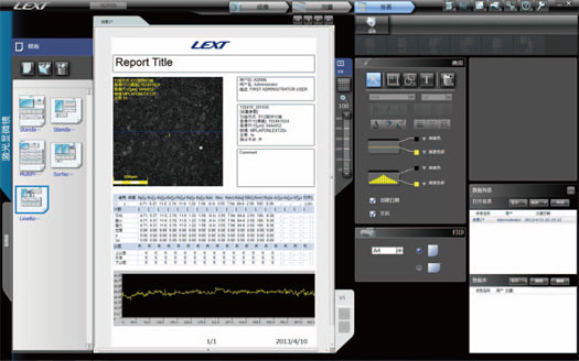 OLS4100 在测量后可使用一键操作创建报表,而且使用编辑功能可以定制各个报表模板。将测量结果复制和粘贴到Word 或表格应用程序也简单,就像从数据库取回所需的影像和报表一样。