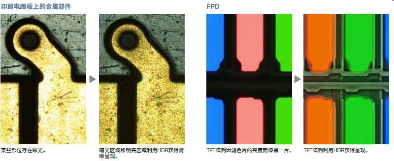 通过暗场与明场、荧光或偏光等其他观察方法结合使用,MIX观察技术能够获得特殊的观察图像。MIX观察技术可让用户发现用传统显微镜难以观察的缺陷。暗场观察所用的环形LED照明器具有可四象限分段照明的定向暗场功能。该功能可减少样品光晕,有助于观察样品的表面纹理。