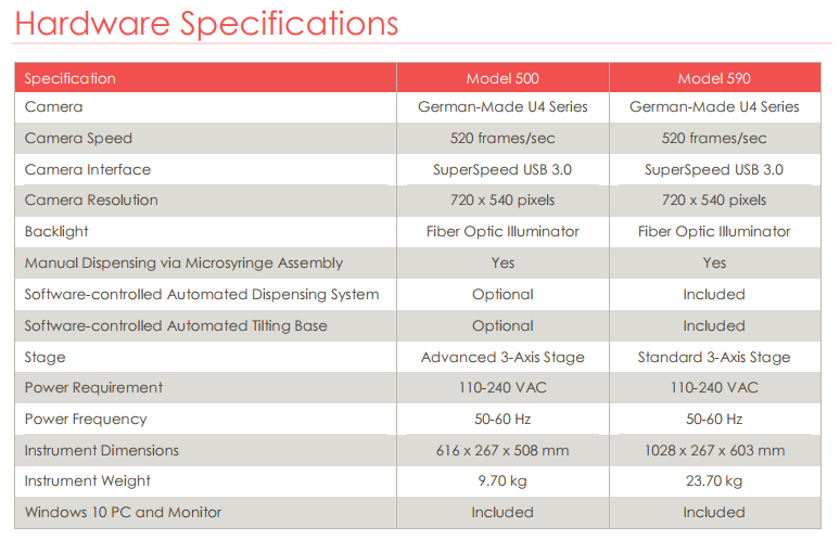 Model 590 features our long optical bench with the fully modular advanced 3-axis stage with fine and coarse vertical adjustment and U4 Series 520 frames/second SuperSpeed digital camera.