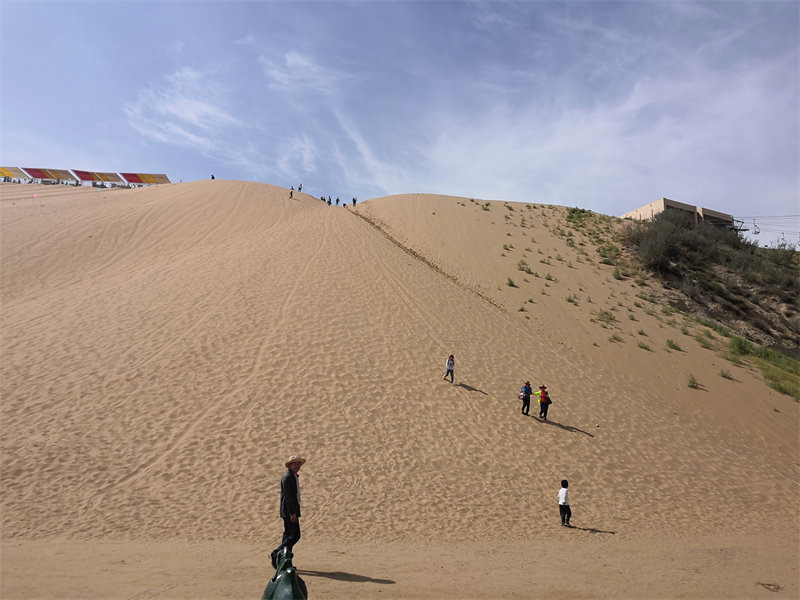 幸福的时光总是过得很快,我们沿着沙漠的小路,乘着沙漠观光小火车开往响沙湾,我们进行一个项目,滑沙项目,从45°的高坡上一滑而下,感觉超级刺激,可惜熊孩子睡着了,只能扛着他从高坡上走下来,一脚一个沙坑,足足走了五六分钟,那酸爽那感觉不言而喻(其实有点怂了)稍作休息,我们乘坐大巴离开前往呼和浩特酒店。