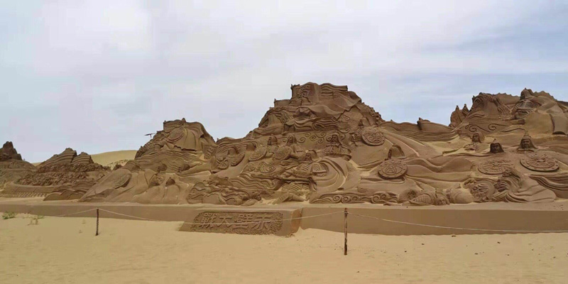 哈哈,我们来到了悦沙岛,一个带有水上乐园的沙漠区,蓝天白云沙漠水上乐园,人们在水中尽情嬉戏玩耍,用手摸了下水,好凉快,是一种难以言表的爽,可惜准备工作没做好(泳衣泳裤没带),只能躺在椅子上晒晒日光浴,游牧部落艺术宫的鄂尔多斯婚礼开始了,我们从歌舞剧中了解了鄂尔多斯人们婚礼的流程,比我们的婚礼复杂有趣多了,望着一望无际的沙,我们在沙雕部落看到了无数艺术家的沙雕作品,自己也堆了一个,真的好丑,有点自惭形秽。