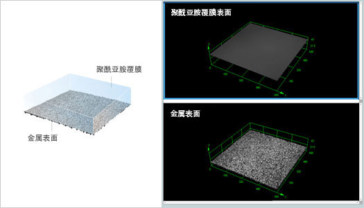 高分子薄膜3D 影像(上)和粗糙度测量结果(左)