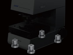 为了排除来自外部的影响,稳定测量和成像,OLS4100 机座内置了由螺旋弹簧和阻尼橡胶组成的"复合减震机构"以稳定操作环境。所以,可以把OLS4100 放在普通的桌子进行测量作业,不需要用的防震平台。 |
