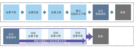 要使用智能扫描模式获取影像时,只需一键操作即可。由于智能扫描会自动调整Z 轴方向的设置,Z 轴方向的影像获取可以仅局限在所需的区域,因此可以在进行大范围大功率观察时节省很多时间。